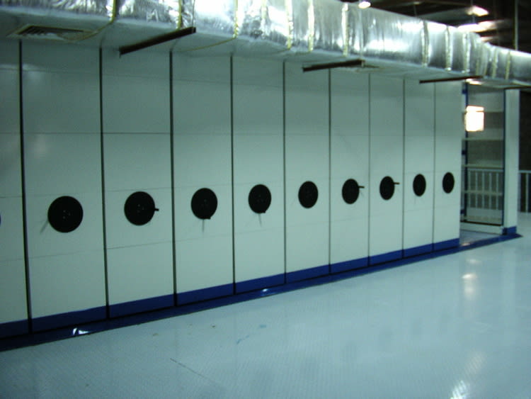 تعمل أنظمة أرفف الأرشيف المتحركة على زيادة استخدام المساحة من خلال تحريك صفوف كاملة من وحدات الأرفف على مسارات, وهذا يلغي الحاجة إلى ممرات دائمة، مما يتيح سعة تخزين أكبر بشكل ملحوظ ضمن نفس المساحة.